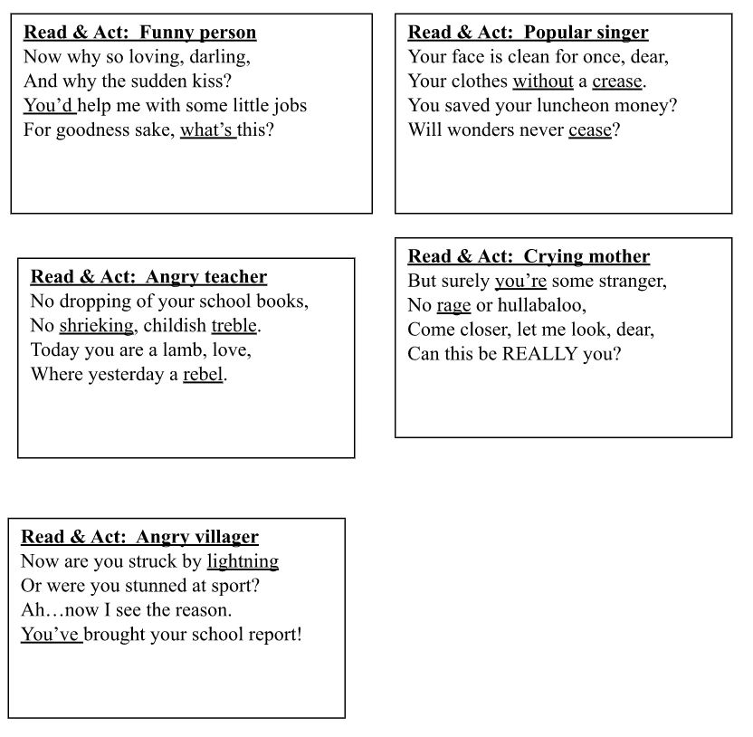 For the next cycle of action research, teacher used stanzas from the poem ‘Newsbreak’. Teacher had made sure all the students read the sentences clearly while acting. Students had to read the sentences again if they did not pronounce the words clearly. The same process of game was repeated until all the sentences were read out by the students.