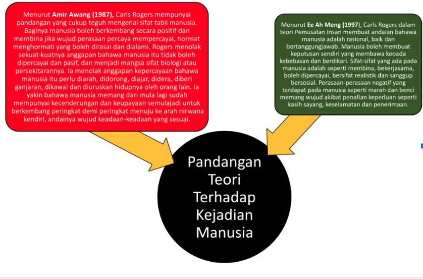Menurut Suradi Salim (1996), manusia dianggap mempunyai sifat-sifat positif dan mempunyai keinginan untuk berfungsi penuh, iaitu hidup dengan seberapa berkesan yang boleh. Jika seseorang itu dibenarkan untuk berkembang dengan bebas, beliau akan berkembang dengan sempurna dan akan menjadi individu yang positif dan berjaya. Pandangan seseorang tentang dirinya dalam konteks persekitarannya menentukan tingkah lakunya dan kepuasan peribadinya. Jika diberikan atau disediakan dengan persekitaran yang menggalakkan, manusia akan berkembang dengan yakin ke arah nirwana kendiri – menjadi apa sahaja yang dia inginkan. Jika manusia tidak menerima kasih sayang dan sokongan orang yang penting baginya, kemungkinan besar manusia menganggap dirinya tidak berharga dan menganggap orang lain tidak boleh dipercayai, serta mereka akan bersikap mempertahankan diri dan perkembangan ke arah nirwana diri akan terhalang.