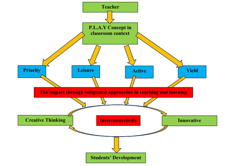 By effectively harnessing its advantages, teachers can effectively stimulate creative thinking and foster the development of students’ innovative capabilities both within and beyond the confines of the classroom. The elements within the P.L.A.Y framework demonstrate a high degree of adaptability and integration with various approaches and theories. This adaptability serves to enhance the overall process and input, which in turn has a significant impact on the output of the lesson. By incorporating these elements, such as the development of creative thinking and fostering students’ innovative problem-solving abilities, both within the classroom and in real-world scenario, the P.L.A.Y framework effectively supports student learning and growth.