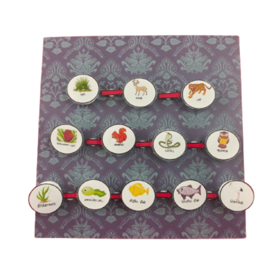 Kit ini digabungkan dengan 2 jenis permainan iaitu Game 1, Game 2. Cara bermain game 1 ialah susun gambar pengeluar dan pengguna dan membina rantai makanan mengikut pelbagai habitat dengan betul. Cara bermain game 2 ialah susun gambar pengeluar dan pengguna dan membina siratan makanan mengikut pelbagai habitat dengan betul.