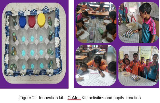 How it works? This innovation kit is made from unwanted or waste egg-tray, ice-cream sticks and colour papers. It is a very low cost kit. After drilling activity on identifying the subject, verb and object words list, pupils use the CoMeL kit to arrange the words correctly in the slots based on pictures and guide words. Pupils actively took part and enjoyed the activity because they wanted to try hands-on activity for themselves because most of the writing lessons are very plain and using mind-map process in writing the sentences or writing essay. It is used as an extra teaching and learning kit to enrich and sustain the interest in writing. It is also a helpful innovation kit to apply to the weak and slow learners as a remedial activity. Through this kit pupils able to attain knowledge and improve writing level independently.