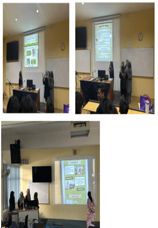 Task 2: A Product Pitching Challenge simulated entrepreneurial scenarios. Students pitched their sustainable innovations to peers and lecturers acting as investors.