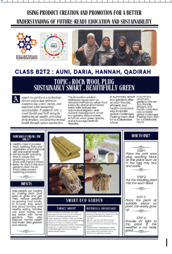 Finally, aligning projects with global priorities gave students a stronger sense of purpose. Each team was required to explicitly link their product to at least one Sustainable Development Goal (SDG) and articulate this connection during their pitch. This task enhanced ownership of their work and reinforced the idea that learning can contribute to real-world challenges. Early attempts were superficial, with statements such as “this supports SDG 12.” By the end, however, students provided more specific connections, for example: “This filter aligns with SDG 6 (Clean Water and Sanitation) by providing affordable, safe water to rural households.” Such articulation demonstrated not only a deeper understanding of global issues but also a growing sense of civic responsibility.