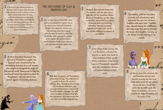 - Students formed groups and were given a set of abstracted story elements (e.g., a prince, a quest, a villain).