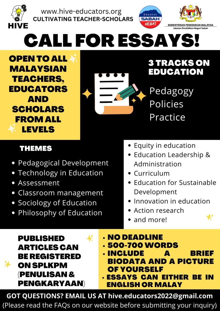 The Knowledge-sharing Writing Program is a continuous HIVE collaboration with the Sektor Sumber dan Teknologi Pendidikan (SSTP) Sabah. The collaboration aims to provide a platform for teachers to discuss educational issues in a critical and holistic manner, simultaneously centering the voice of teachers in the Malaysian education landscape. Publishing short essays every Friday, the collaboration acknowledges the intellectual contributions of our writers in the form of certificates. Teachers are also able to include their written contribution in the Latihan Dalam Perkhidmatan (In-service Training) (LADAP) system.