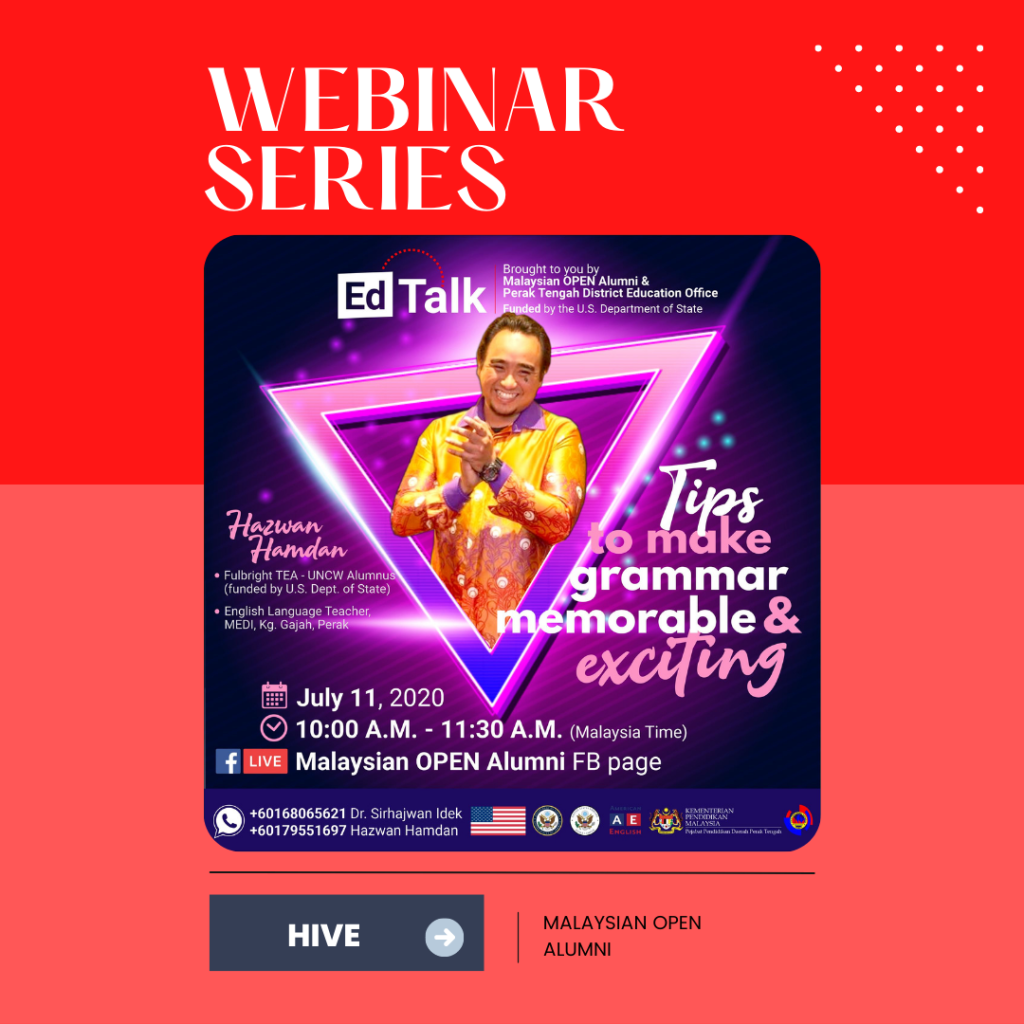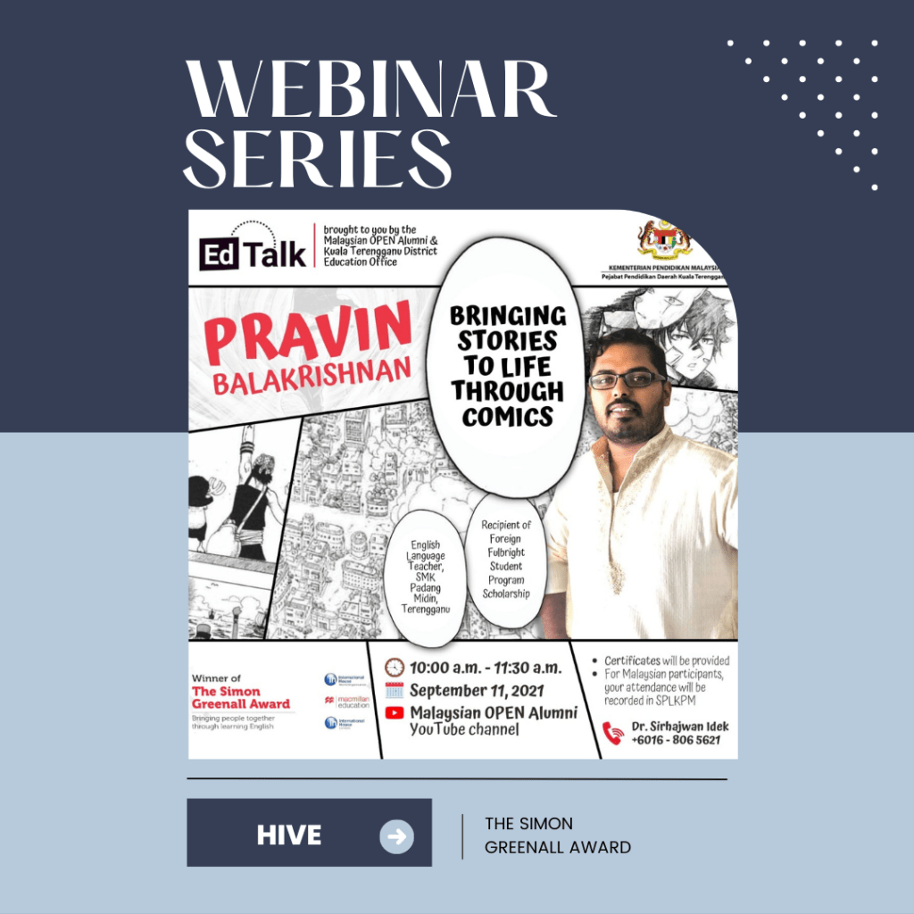 Webinars (CLICK ON THE IMAGE TO WATCH THE RECORDING) MASTER CLASSES in collaboration with Project Dau Dau, winner of the Simon Greenall Award as Malaysian OPEN Alumni, funded by Malaysian-American Commission on Educational Exchange (MACEE)